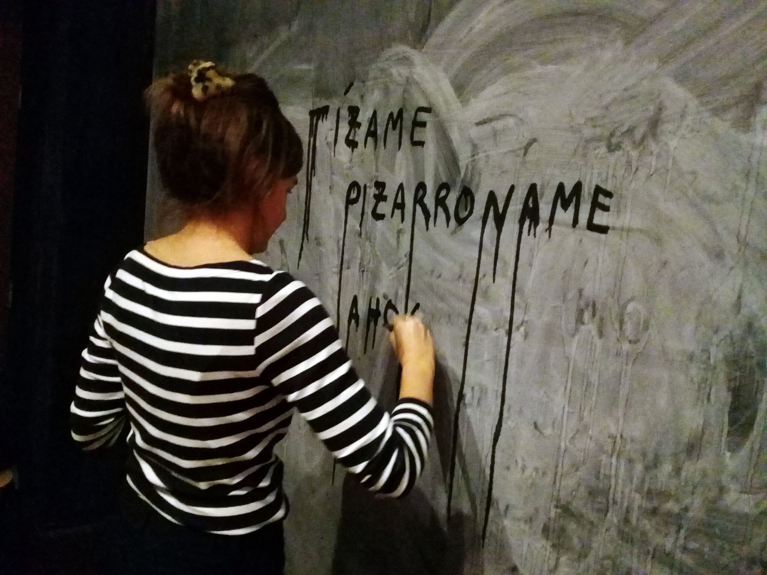 Acción colectiva en la obra Pieza pizarrón, a cargo de Claudia del Río