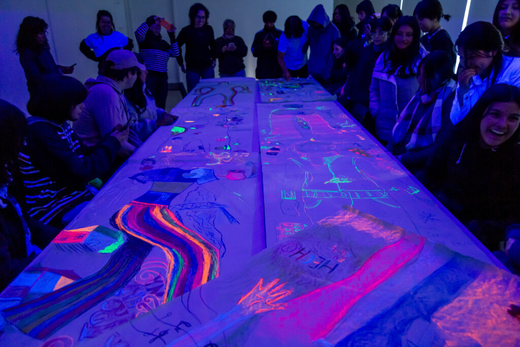 Inspirados en el universo del gran artista argentino Luis Felipe “Yuyo” Noé, te invitamos a abrazar el caos y aventurarte hacia lo desconocido. Se trata de una experiencia lúdica y sensorial pensada para personas de todas las edades. Al abrigo de los misterios invisibles, las luces ultravioleta y una atmósfera inesperada, descubriremos mundos que no se revelan a simple vista. A partir de materiales no convencionales, te proponemos crear tus propias herramientas para explorar “eso que llamamos arte”.