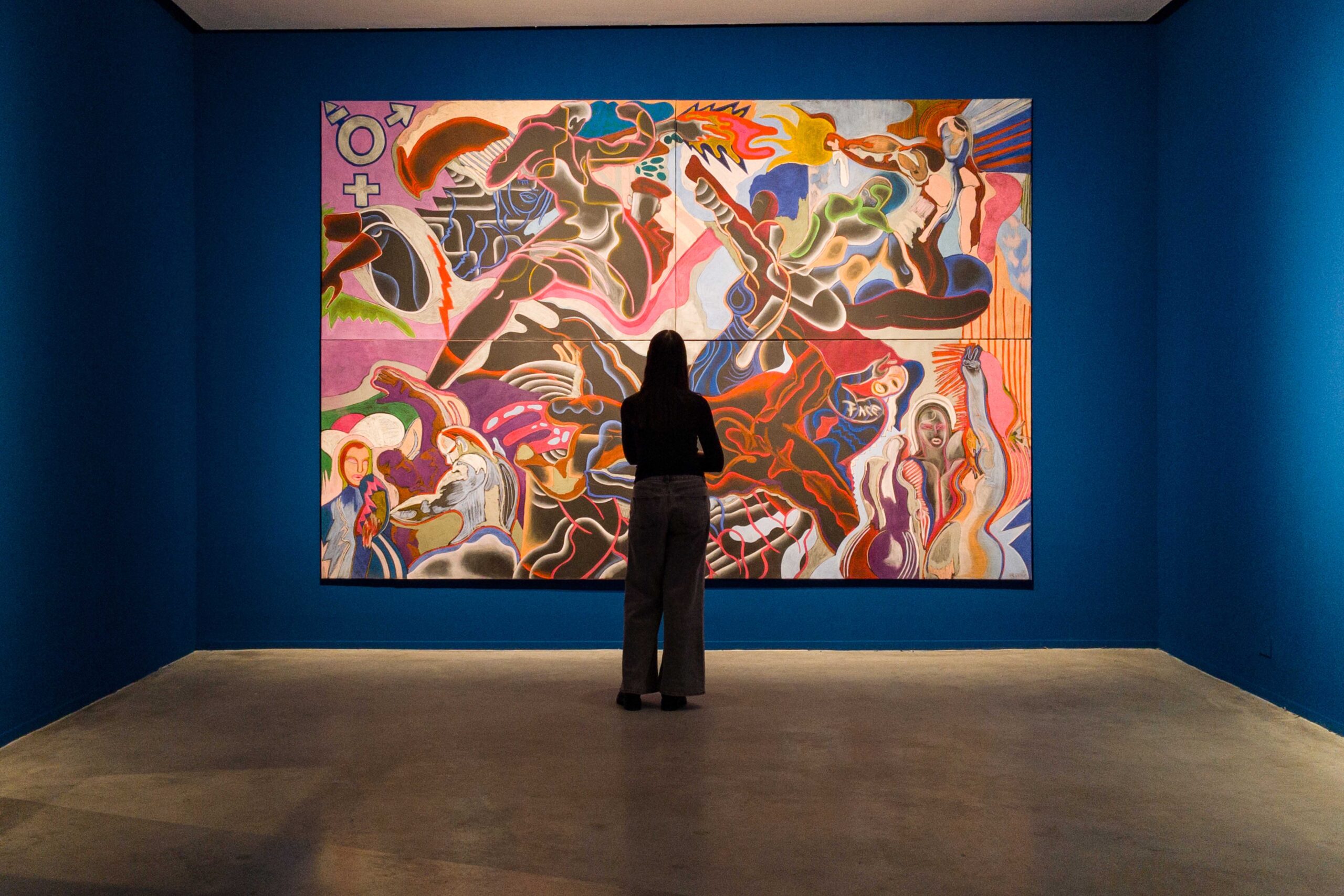 The title Un día en la vida [A Day in the Life] alludes to the immediacy and dizzying pace at which Valentina produces her works, as if each piece emerged in the frenzy of a hectic day. Her technique, which recalls the monumentality of muralism, presents an electric language of striking contrasts against dark backgrounds. In a setting filled with colour and desire, bodies merge and intertwine, weaving together a shared history, a moment in time suspended in the rhythm of life.