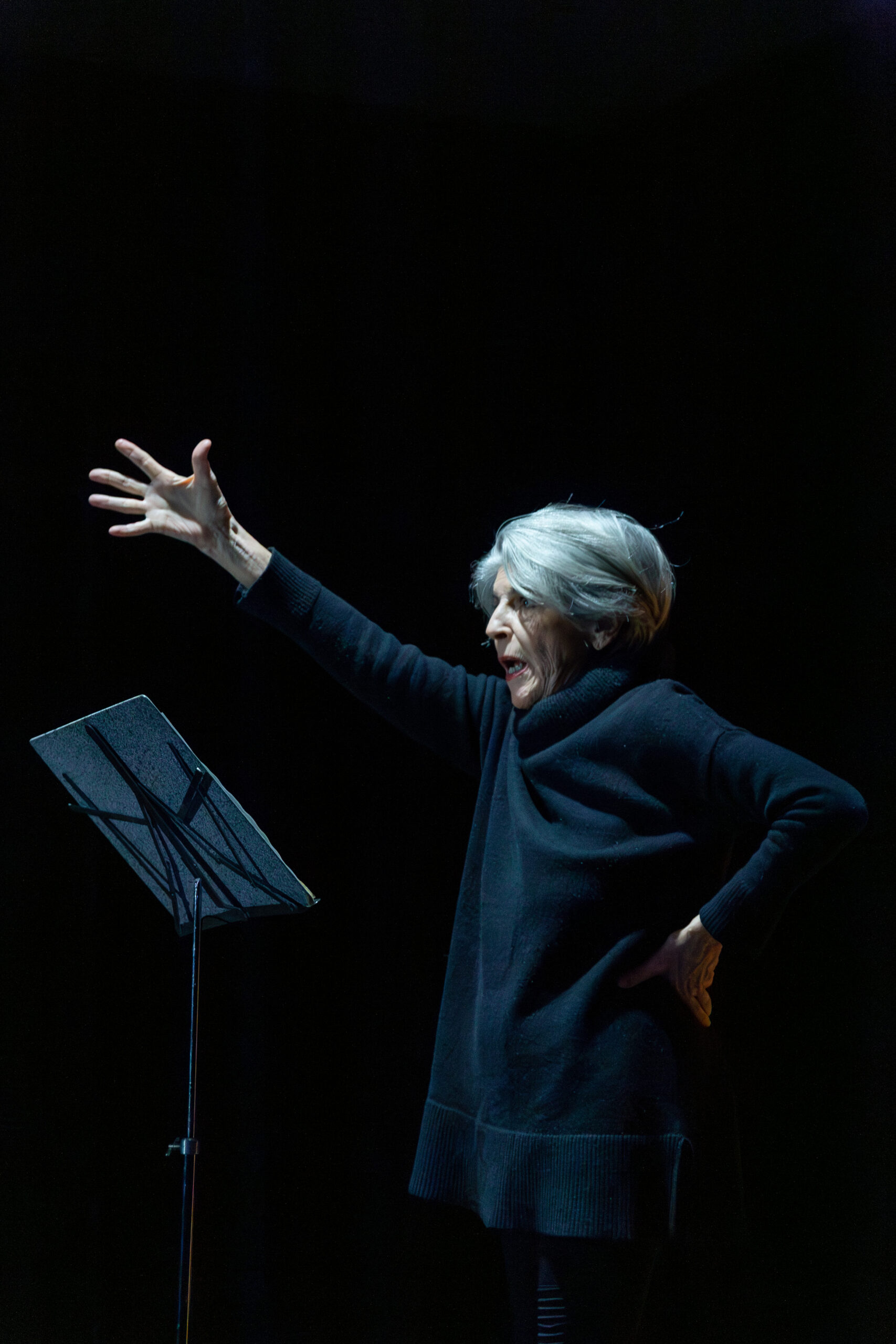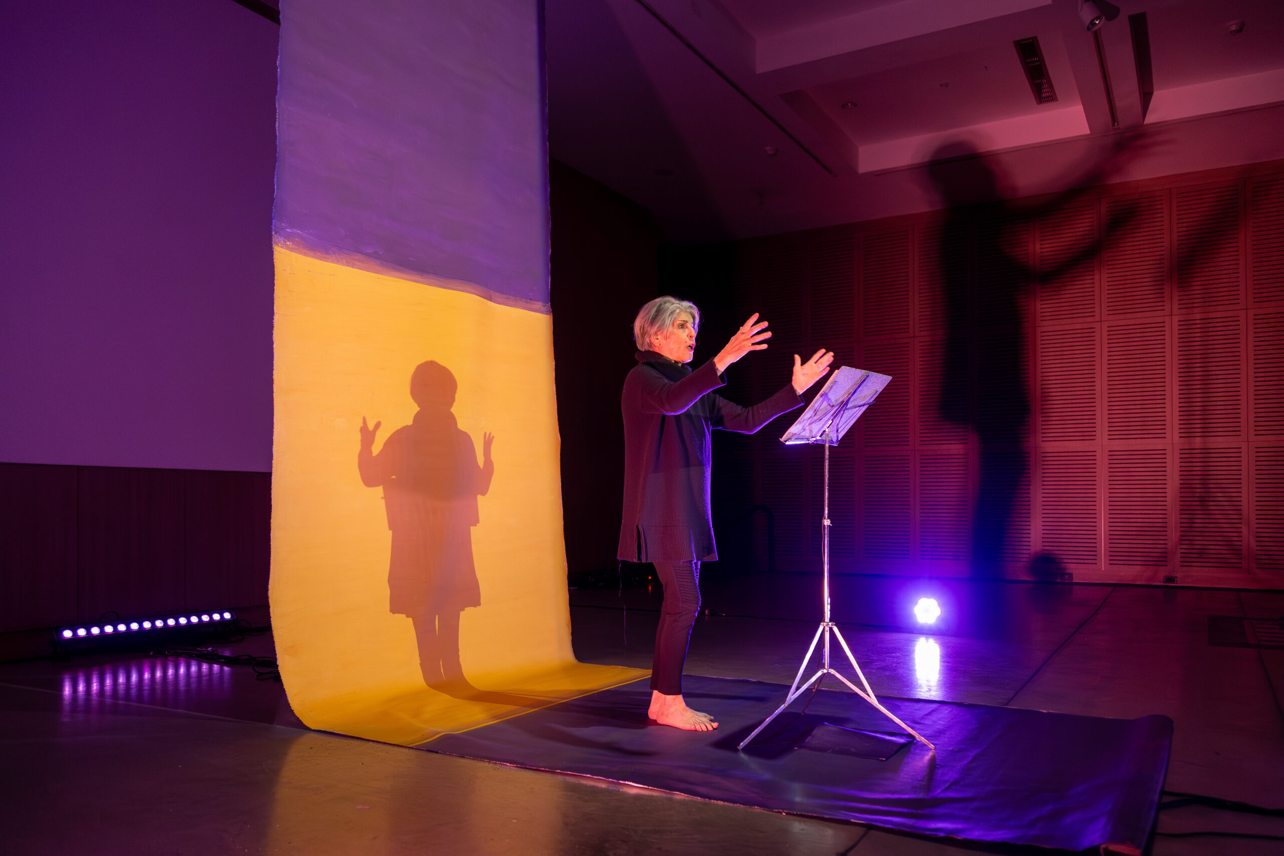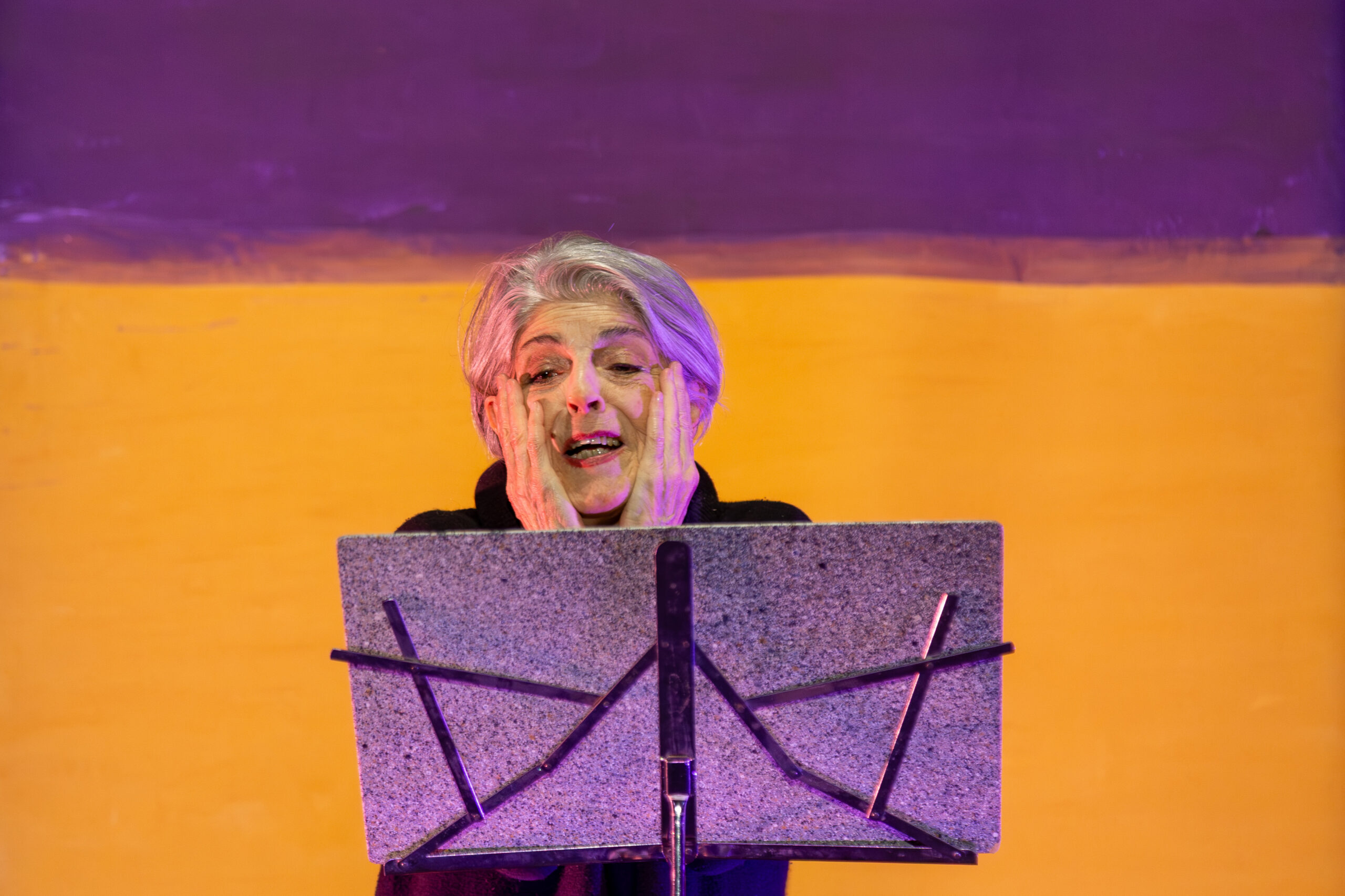 Bellesi recited her works over the course of a half hour, with her voice becoming the main instrument in this sound intervention. A loudspeaker was positioned in front of museum visitors, who were surprised by the appearance of the poet and of her deep voice, capable of moving audiences around the world. Another loudspeaker was positioned at the other end of the hall, producing a poetic ambience that contributed an additional layer of contemplation to the works of art.