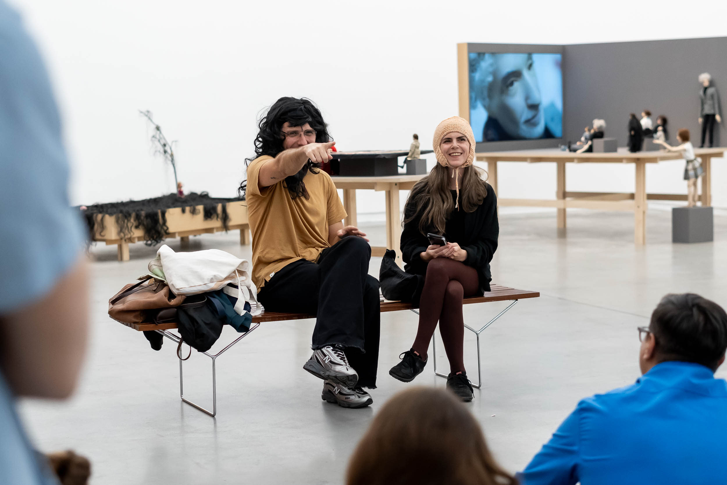 Visita desorientada [Misguided Visits] is a cycle that puts a new spin on the classic guided tour of a museum. The first edition was led by the poet, actor and performer Fernando Noy, who took participants through the galleries of the Cuerpos contacto [Contact Bodies] exhibition. Noy is both a witness and the protagonist of many of the works and subjects on display in the exhibition. For instance, he can be seen in a photograph from the 1980s together with Batato Barea and Alejandro Urdapilleta in the piece El mundo del arte [The World of Art], which was mounted for the occasion.
