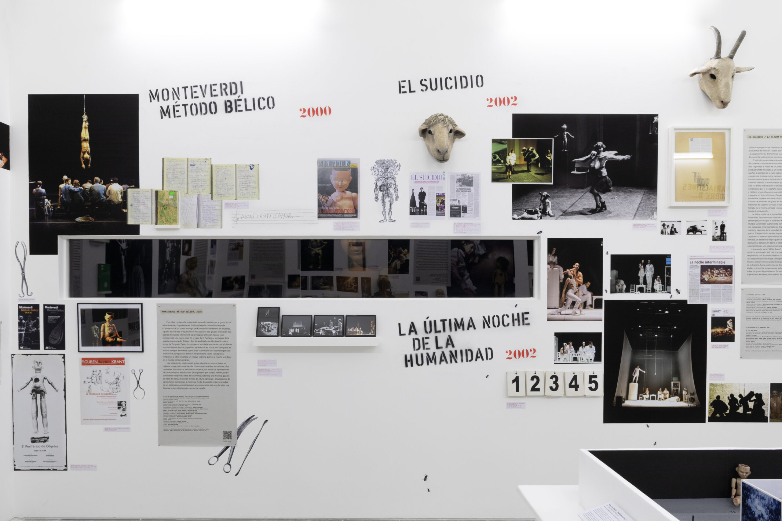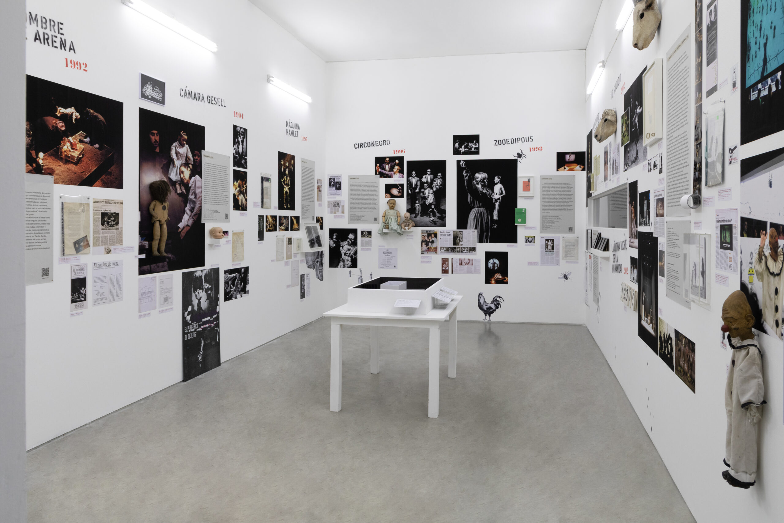 El recorrido que les proponemos acompaña los desplazamientos del lenguaje periférico a lo largo de los años: del retablo de títeres de sus primeros espectáculos a la toma total del escenario en Máquina Hamlet, de la monumentalidad de Monteverdi Método Bélico a la condensación poética de Manifiesto de niños. Esta muestra es el retorno vivo de los objetos, que traen al presente, como si fueran pequeñas máquinas del tiempo, el legado rupturista de este grupo que transformó la escena cultural y teatral argentina.