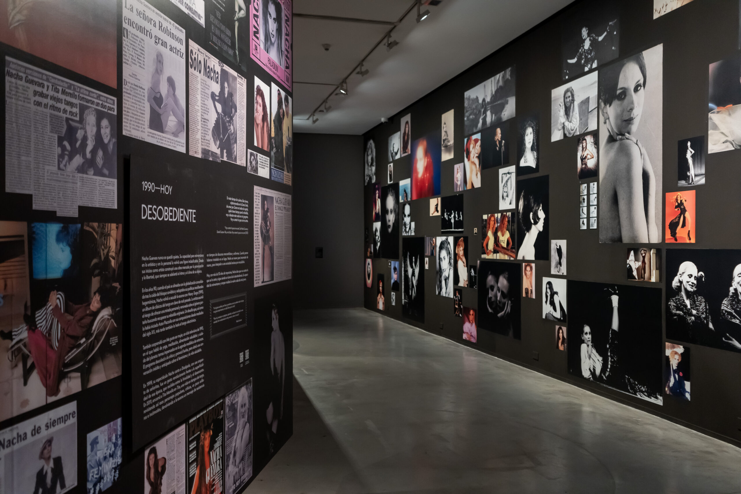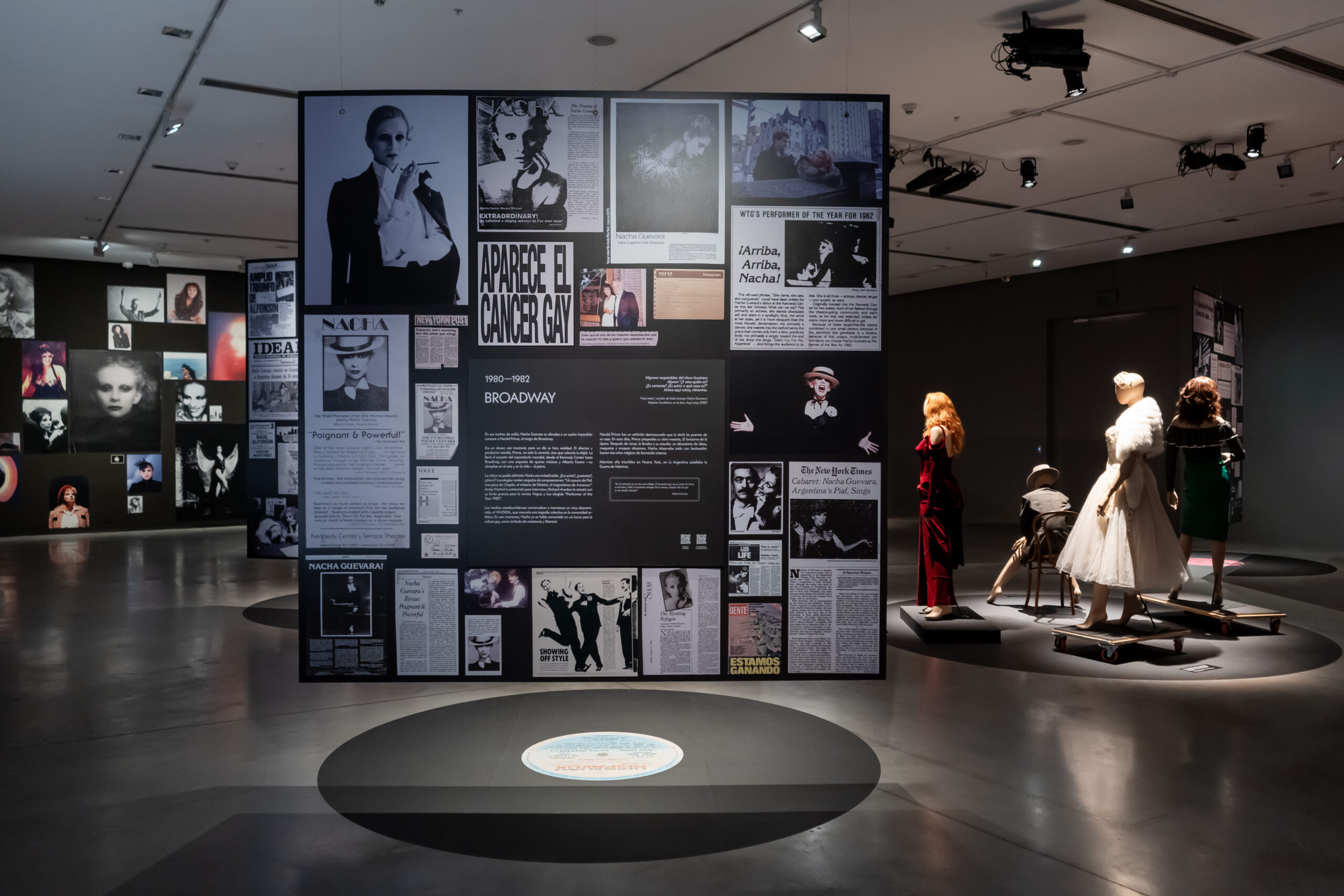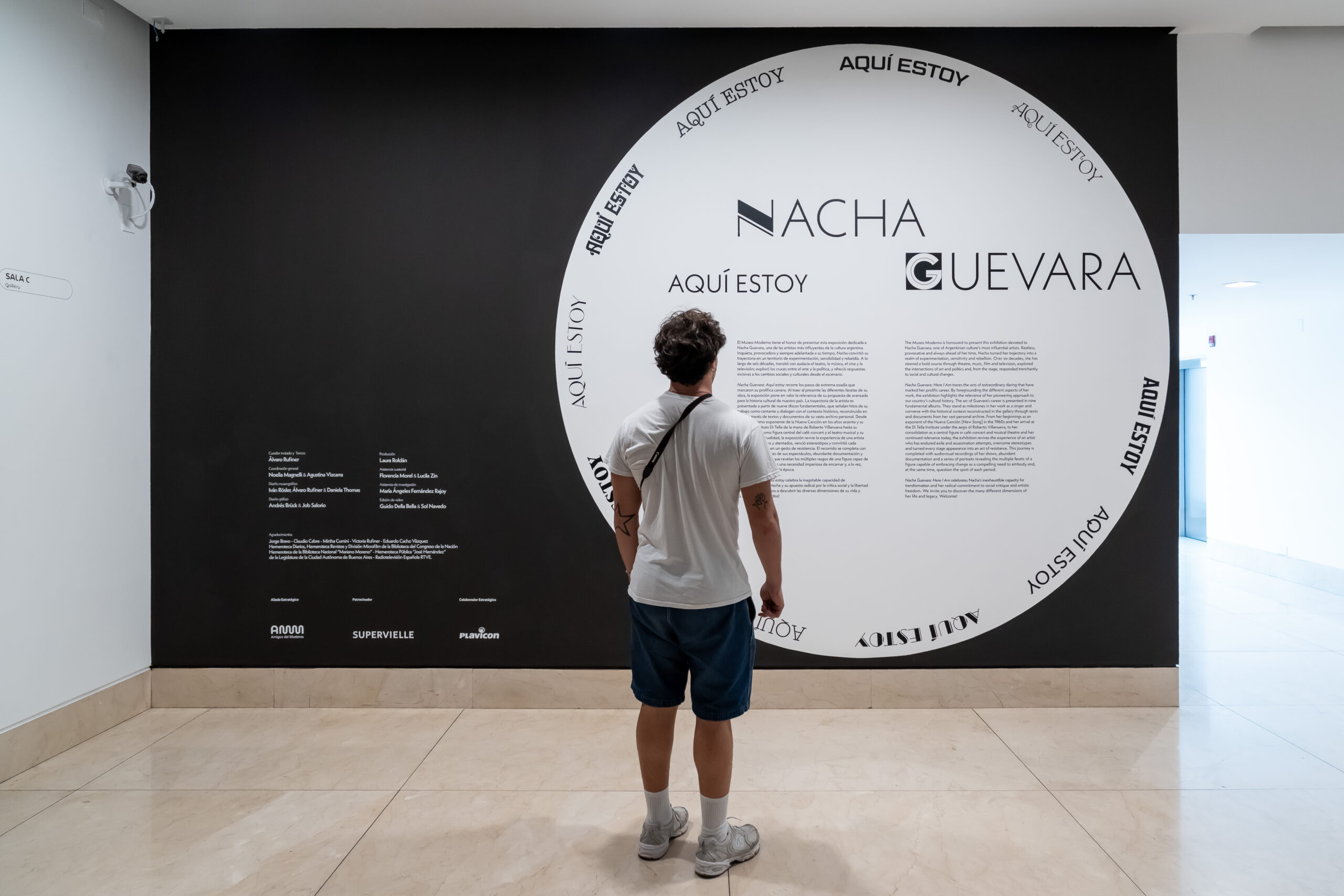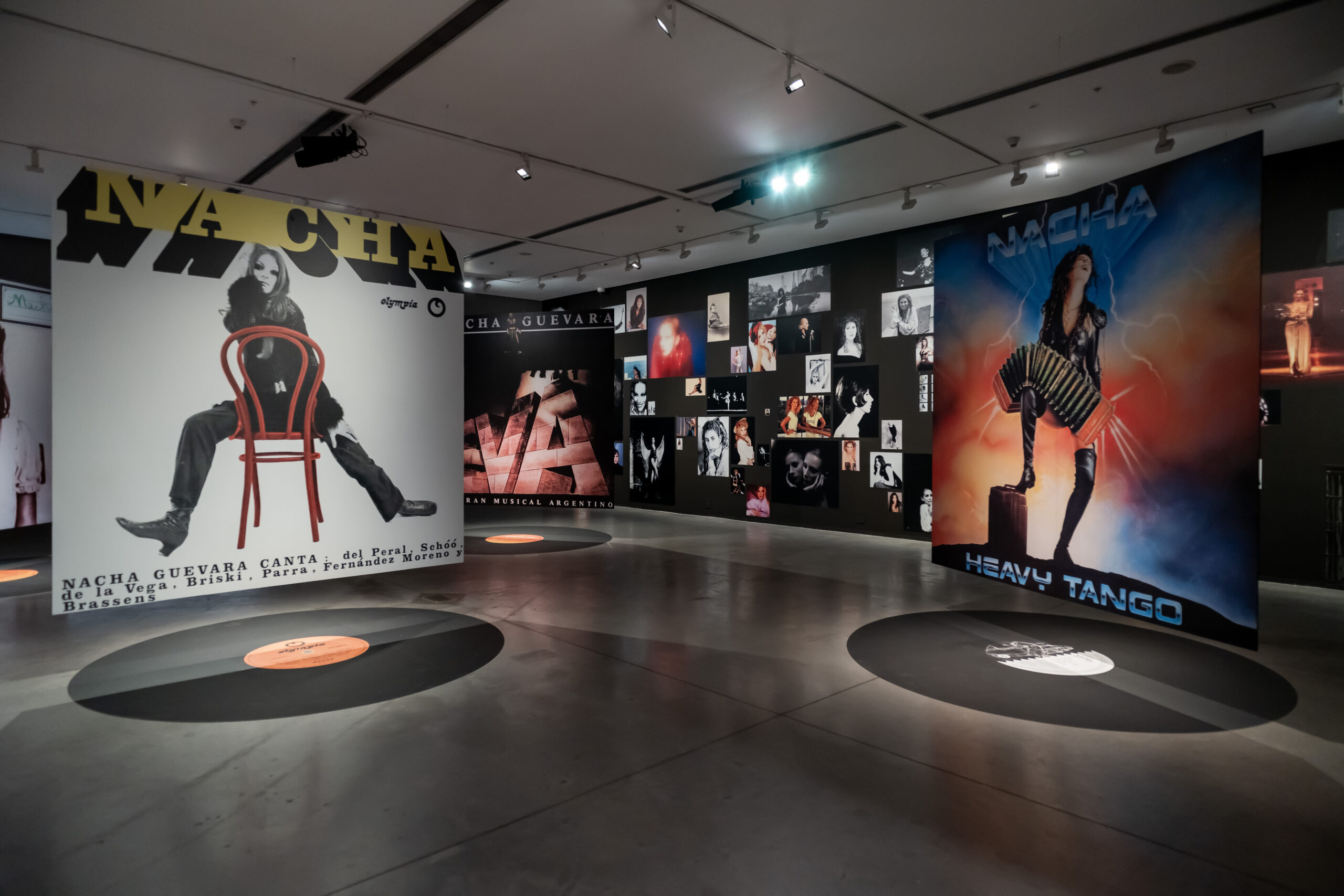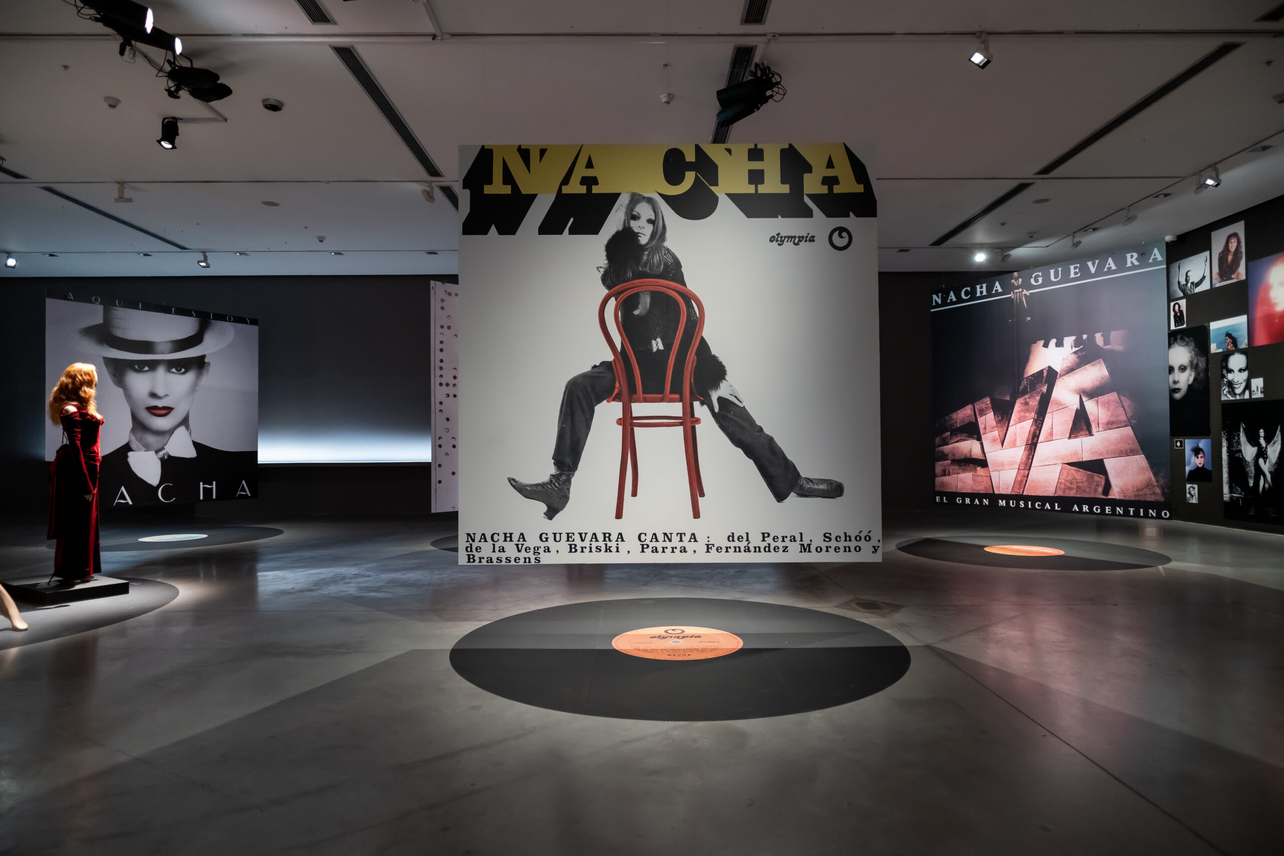 Nacha Guevara: Aquí estoy recorre los pasos de extrema osadía que marcaron su prolífica carrera. Al traer al presente las diferentes facetas de su obra, la exposición pone en valor la relevancia de su propuesta de avanzada para la historia cultural de nuestro país. La trayectoria de la artista es presentada a partir de nueve discos fundamentales, que señalan hitos de su trabajo como cantante y dialogan con el contexto histórico, reconstruido en la sala a través de textos y documentos de su vasto archivo personal. Desde sus inicios como exponente de la Nueva Canción en los años sesenta y su llegada al Instituto Di Tella de la mano de Roberto Villanueva hasta su consolidación como figura central del café-concert y el teatro musical y su vigencia en la actualidad, la exposición revive la experiencia de una artista que atravesó exilios y atentados, venció estereotipos y convirtió cada presencia escénica en un gesto de resistencia. El recorrido se completa con registros audiovisuales de sus espectáculos, abundante documentación y una serie de retratos que revelan los múltiples rasgos de una figura capaz de abrazar el cambio como una necesidad imperiosa de encarnar y, a la vez, discutir el espíritu de cada época.