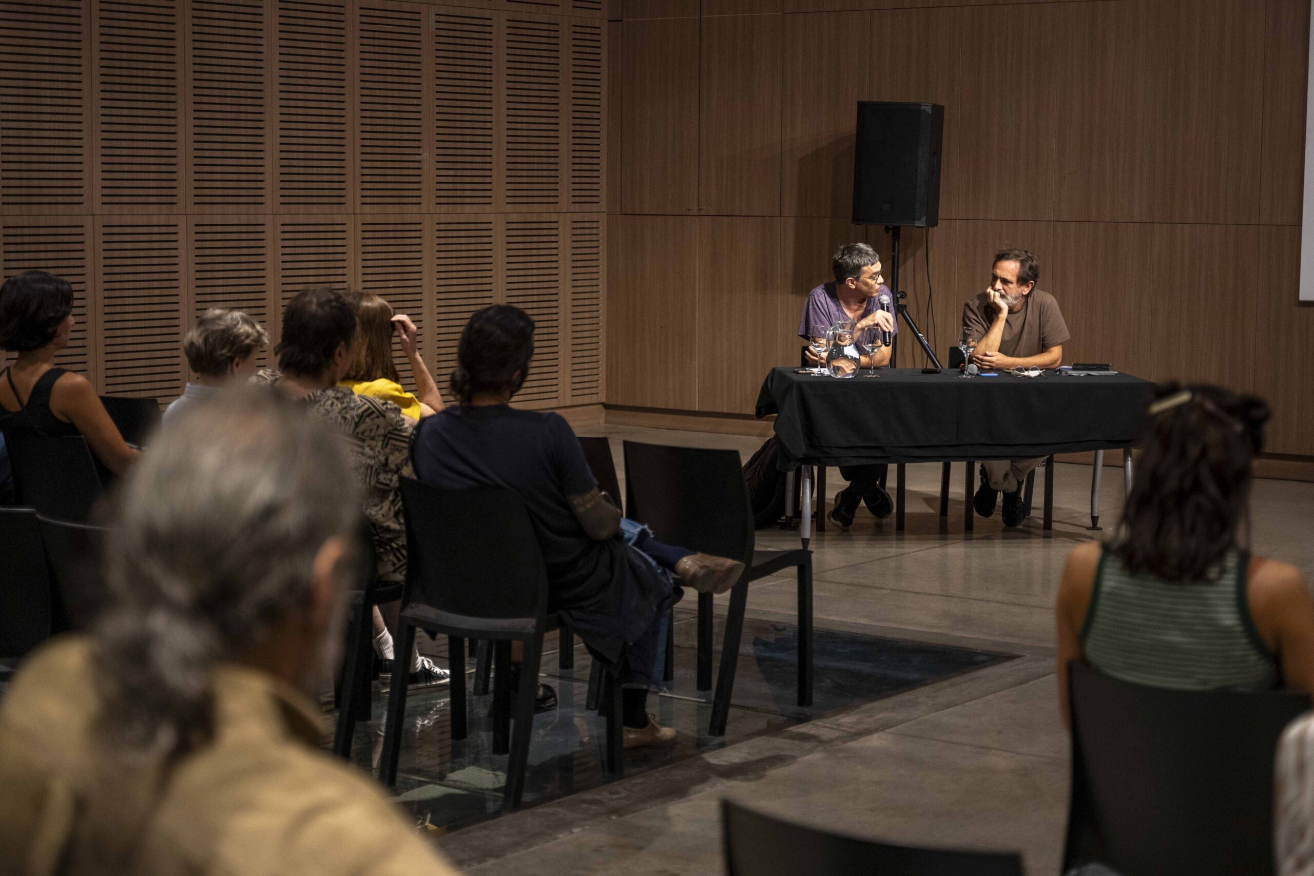 Con la participación del crítico y escritor Daniel Molina (muy seguido en X como @rayovirtual), Francisco Lemus, uno de los curadores de la exposición Cuerpos contacto, y Fernando García, curador de Programas Públicos del Museo, repasaron algunas obras y artistas del tránsito under de los años ochenta a los noventa. Molina fue protagonista de aquella escena como periodista de la revista El Porteño, el único medio que descendía a los sótanos, y director del Departamento de Letras del Centro Cultural Rojas. Detrás de las imágenes de Batato Barea, las fotografías de la obra El mundo del arte (Alberto Goldenstein) o flyers de Los Redondos, Molina se encontraba como testigo y a la vez analizaba en perspectiva la esencia del under. “Fue el único momento en el que el arte ejecutó la utopía de estar fuera del mercado porque a nadie le interesaba lo que hacíamos”, dijo. La conversación estuvo anclada en una proyección que incluyó un fragmento de un show de Virus en Obras en 1984 y la última noche del Parakultural, con Batato, Urdapilleta y Tortonese aplaudidos, al mismo tiempo en el registro de archivo y en el auditorio del Moderno.