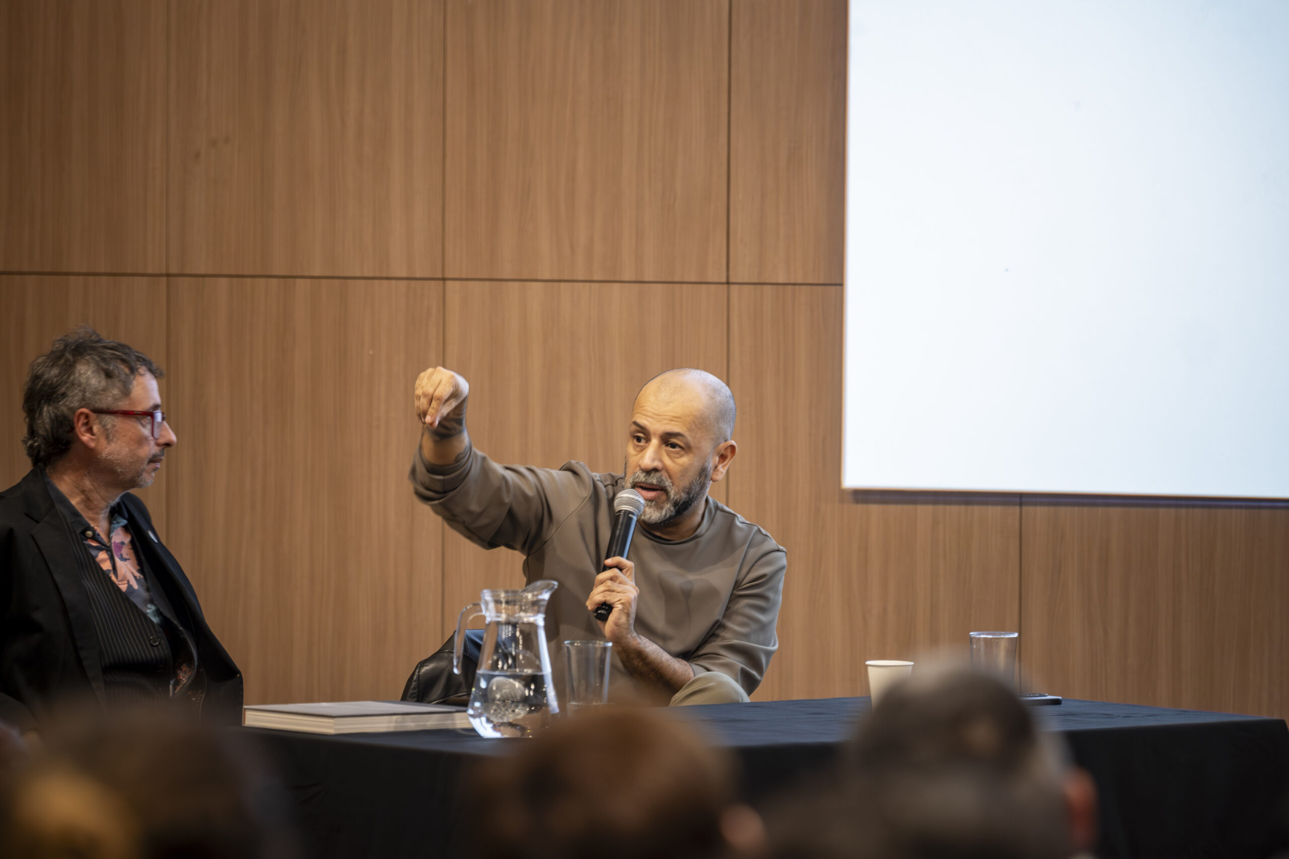Como cierre de la inauguración de la exposición Especulaciones, la artista Onome Ekeh fue entrevistada en el auditorio del museo por la periodista cultural y analista internacional Hinde Pomeraniec. Frente a las proyecciones de obras que forman parte de la exposición, el diálogo, con traducción simultánea de Marita Propato, echó luz sobre los orígenes artísticos de Ekeh en Nigeria y sus referencias a la cultura y la historia de su país presentes en las obras digitales y los videos que se exhiben en el Moderno. Ekeh definió su postura frente al lugar en el que son encasillados los artistas y escritores afroamericanos y describió de qué modo la tecnología está de su lado para reimaginar el pasado de un continente devastado tras los procesos de colonización y extractivismo. Lejos de renegar de la IA, Ekeh dejó un título que es puro signo de los tiempos: “El problema no está en la tecnología, sino en la cultura en la que vivimos”. A sala llena, la artista, que exhibe por primera vez en la Argentina, se retiró con un aplauso cerrado.